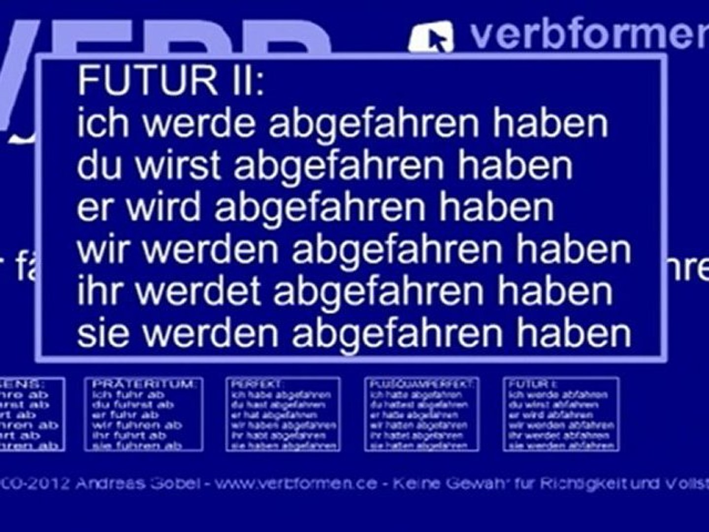 Konjugation Des Starken Verbs Abfahren Hilfsverb Haben Abfahren Konjugieren